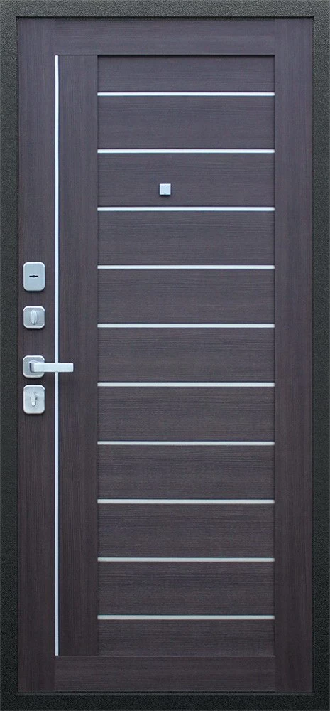 Надежная входная Дверь Соло орех рифленый премиум класса по цене 35 639 руб. Большая толщина стали защитит от проникновения в ваш дом, квартиру или коттедж. Используется очень качественная фурнитура: замки, цилиндры, ручки, защелки. Покрытие и отделка двери изготовлено под внимательным контролем производителя. Дверь имеет долгий срок службы и гарантию.