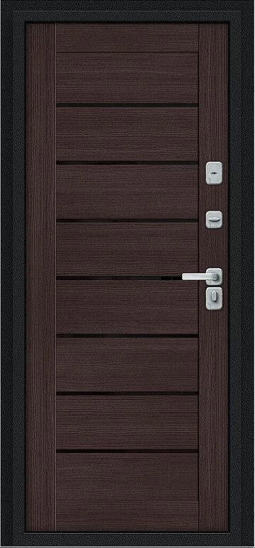 Дверь Браво Thermo Техно Д2/BChrome Букле черное/Wenge Melinga - недорогая эконом класса по цене 4 439 руб., отлично подходит для временной установки в квартиру под сдачу, строительство, ремонт. Не смотря стоимость, модель хорошего качества.