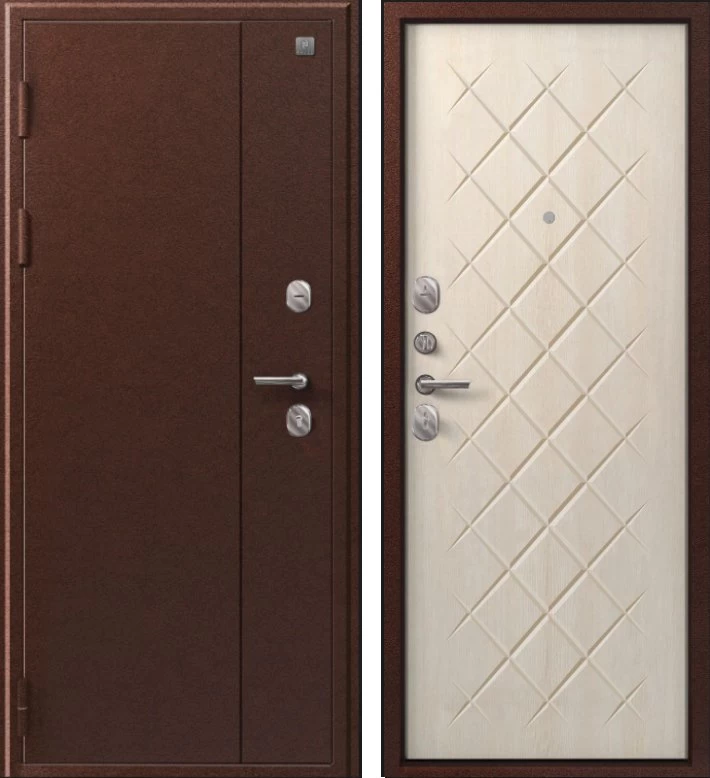 Надежная входная Дверь V-02 медь антик - седой дуб премиум класса по цене 36 789 руб. Большая толщина стали защитит от проникновения в ваш дом, квартиру или коттедж. Используется очень качественная фурнитура: замки, цилиндры, ручки, защелки. Покрытие и отделка двери изготовлено под внимательным контролем производителя. Дверь имеет долгий срок службы и гарантию.